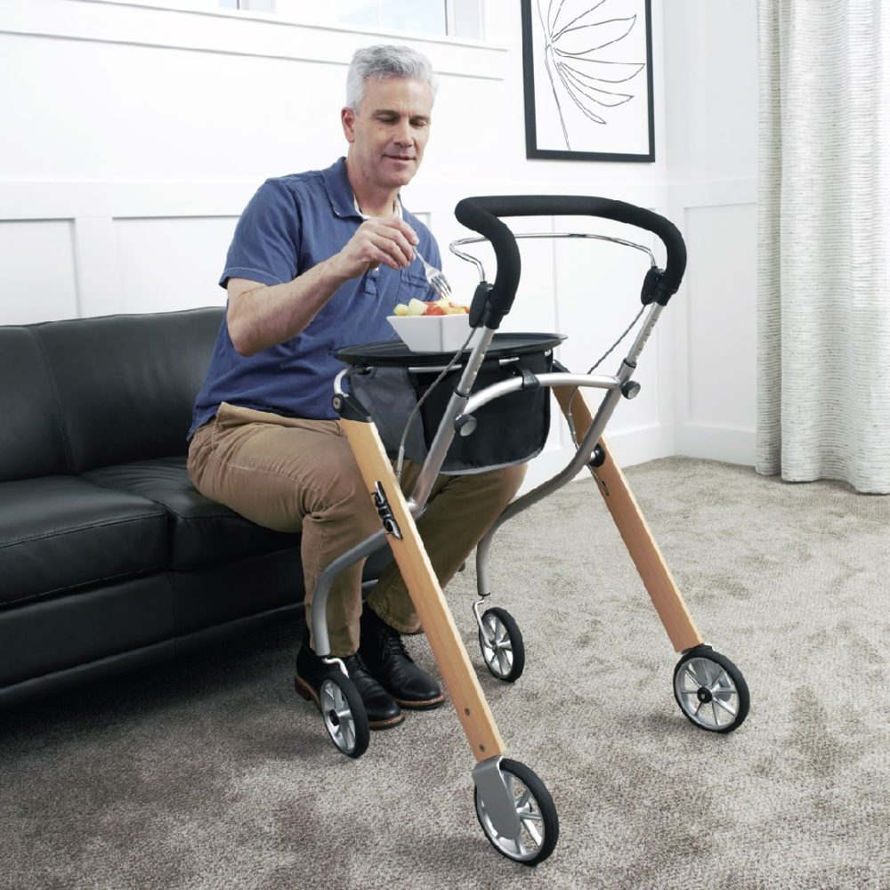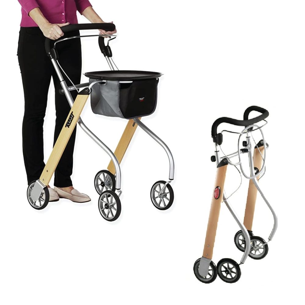 Andador plegable con bandeja y bolso, Let’s Go Trust Care es el andador para interiores más exclusivo del mundo. Ayuda rodante flexible, segura, cómoda y elegante que facilita el desplazamiento en pasillos, puertas estrechas y alrededor de los muebles.