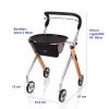 - Bandeja y cesta: Disfrute de las comidas desde su silla favorita invirtiendo el andador hacia usted mientras se sienta y come directamente de la bandeja incluida.
