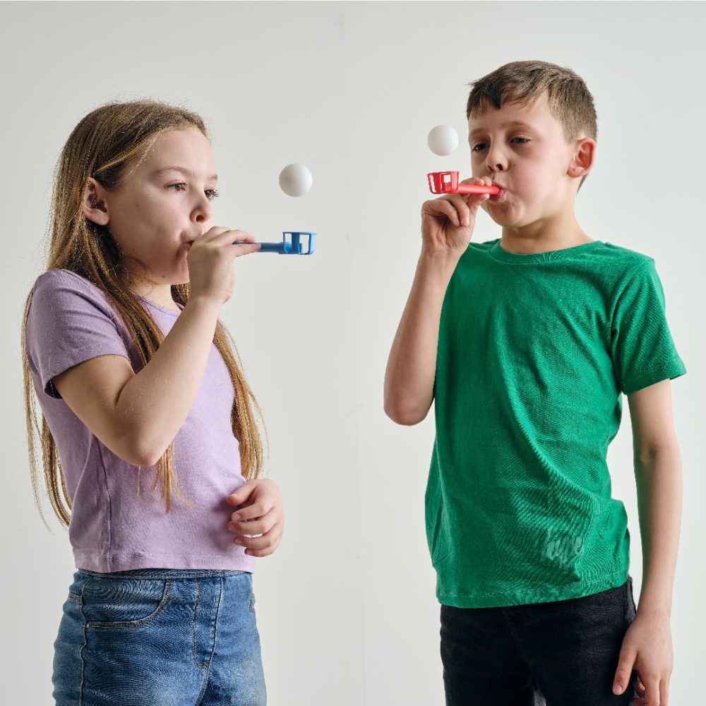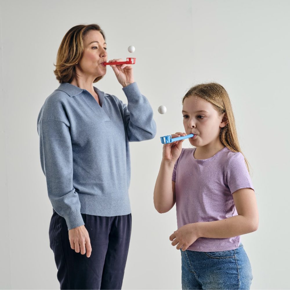 - Fácil y divertido: Soplando a través del dispositivo para levantar la pelota y mantenerla en el aire controlando la respiración. Incluye dos bolas de diferentes pesos y materiales.