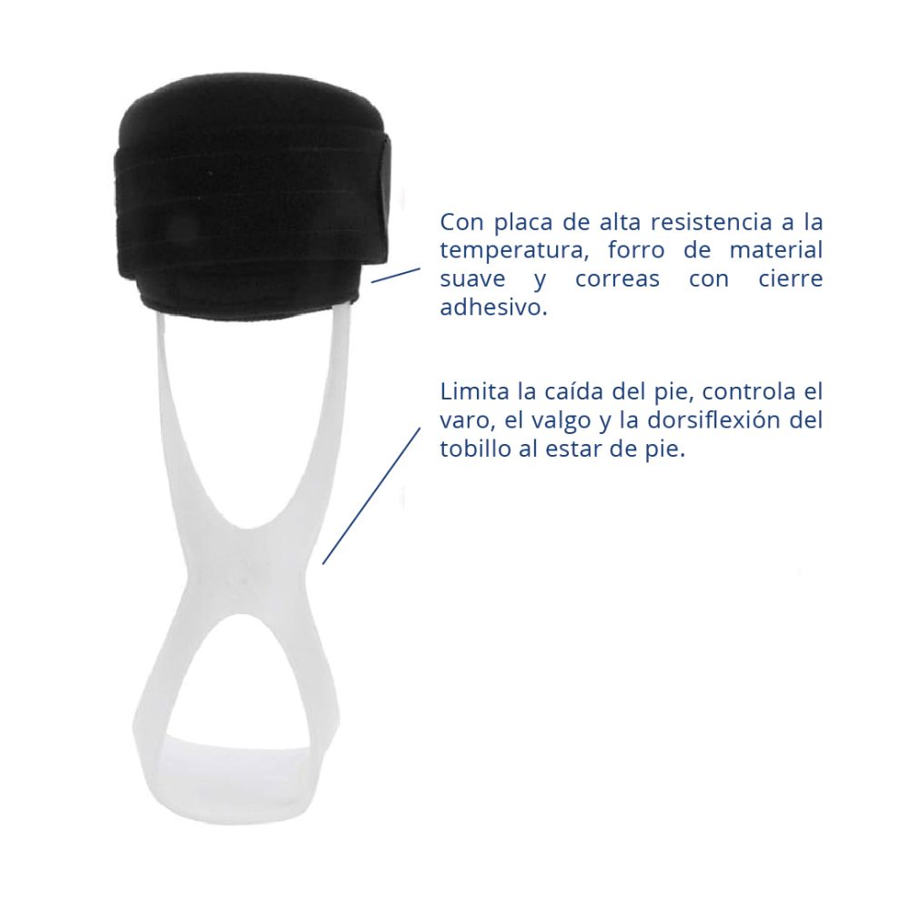 Ortesis tobillo-pie caído recomendada para tratamiento de recuperación de movilidad en ACV, pie caído leve secundario y otras patologías neurológicas.