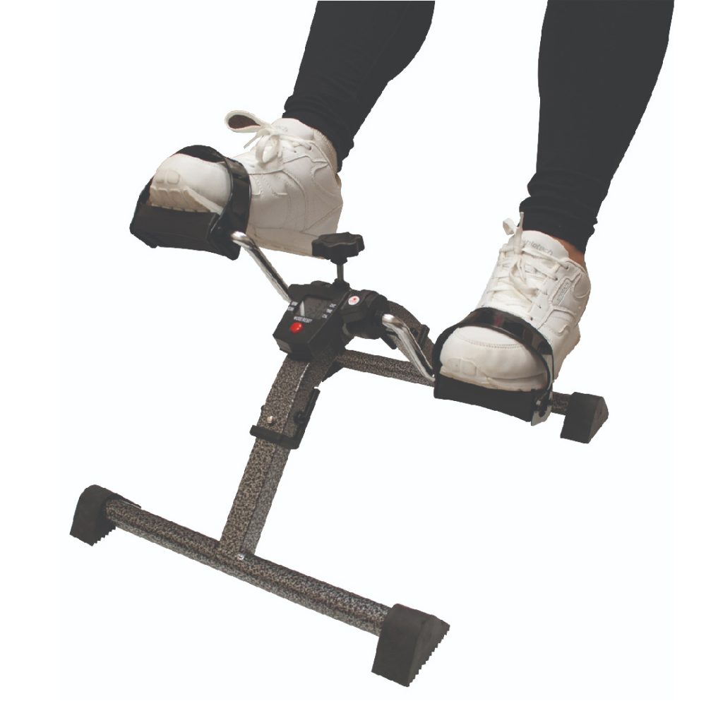 Pedalera de ejercicios plegable con pantalla digital para manos y pies ajustable en velocidad y movimiento del pedaleo hacia adelante o hacia atrás.