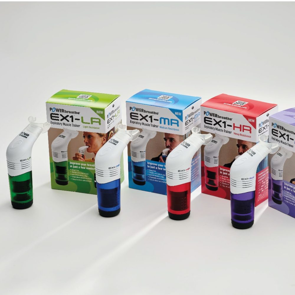 - Las Válvulas de entrenamiento muscular espiratorio EX1 EMT POWERbreathe fortalecen los músculos espiratorios, responsables de expulsar el aire de los pulmones. Estos músculos incluyen los abdominales y los intercostales internos. Mejorando funciones vitales como exhalación con fuerza y controlada, tos efectiva, deglución y control de la voz, rendimiento en ejercicio intenso y actividades físicas.